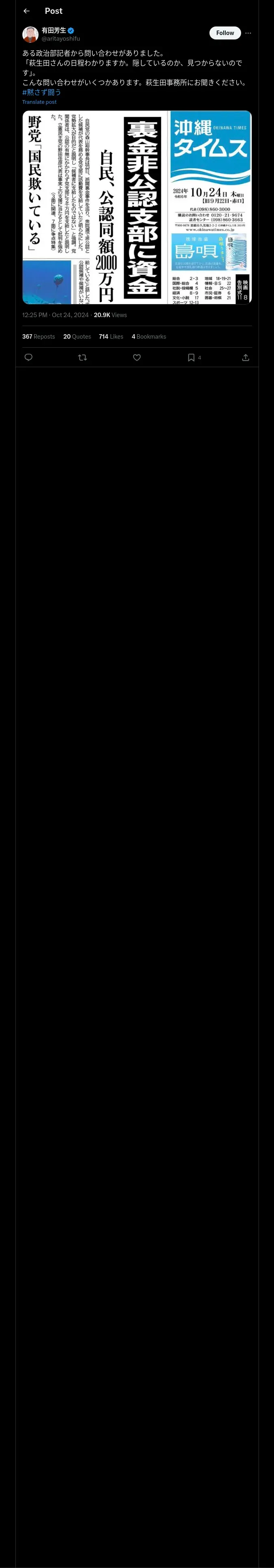 https://x.com:443/aritayoshifu/status/1849290992417190302