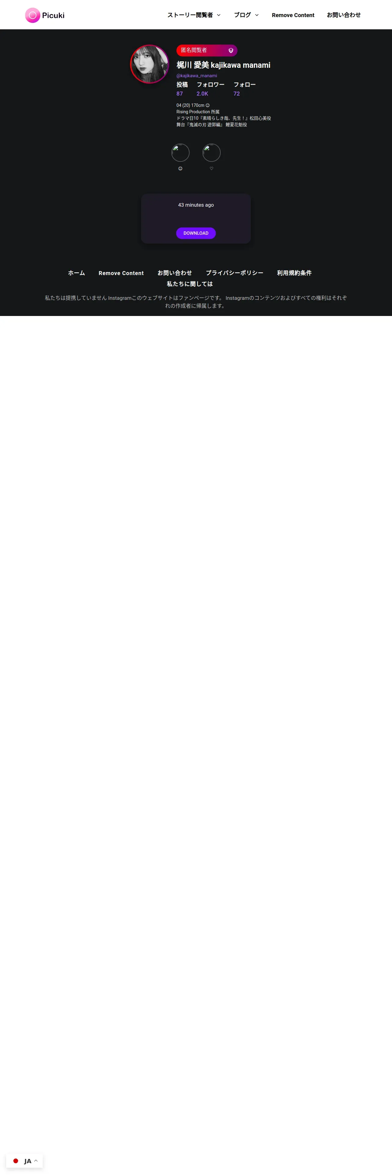 https://picuki.social:443/ja/user/kajikawa_manami/