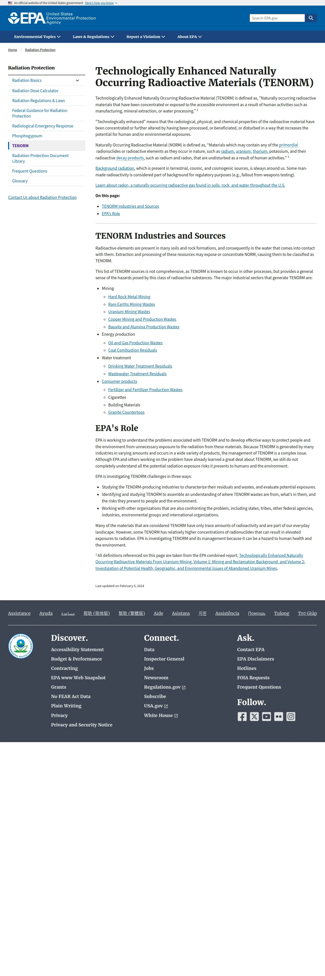 https://www.epa.gov:443/radiation/technologically-enhanced-naturally-occurring-radioactive-materials-tenorm
