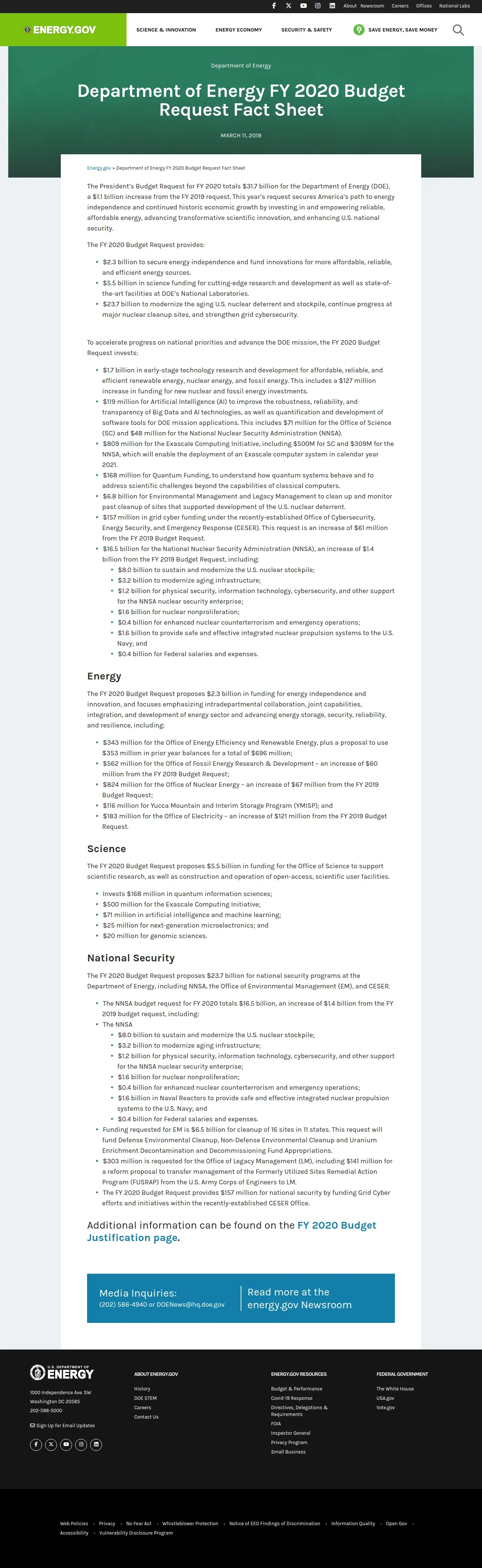 https://www.energy.gov:443/articles/department-energy-fy-2020-budget-request-fact-sheet