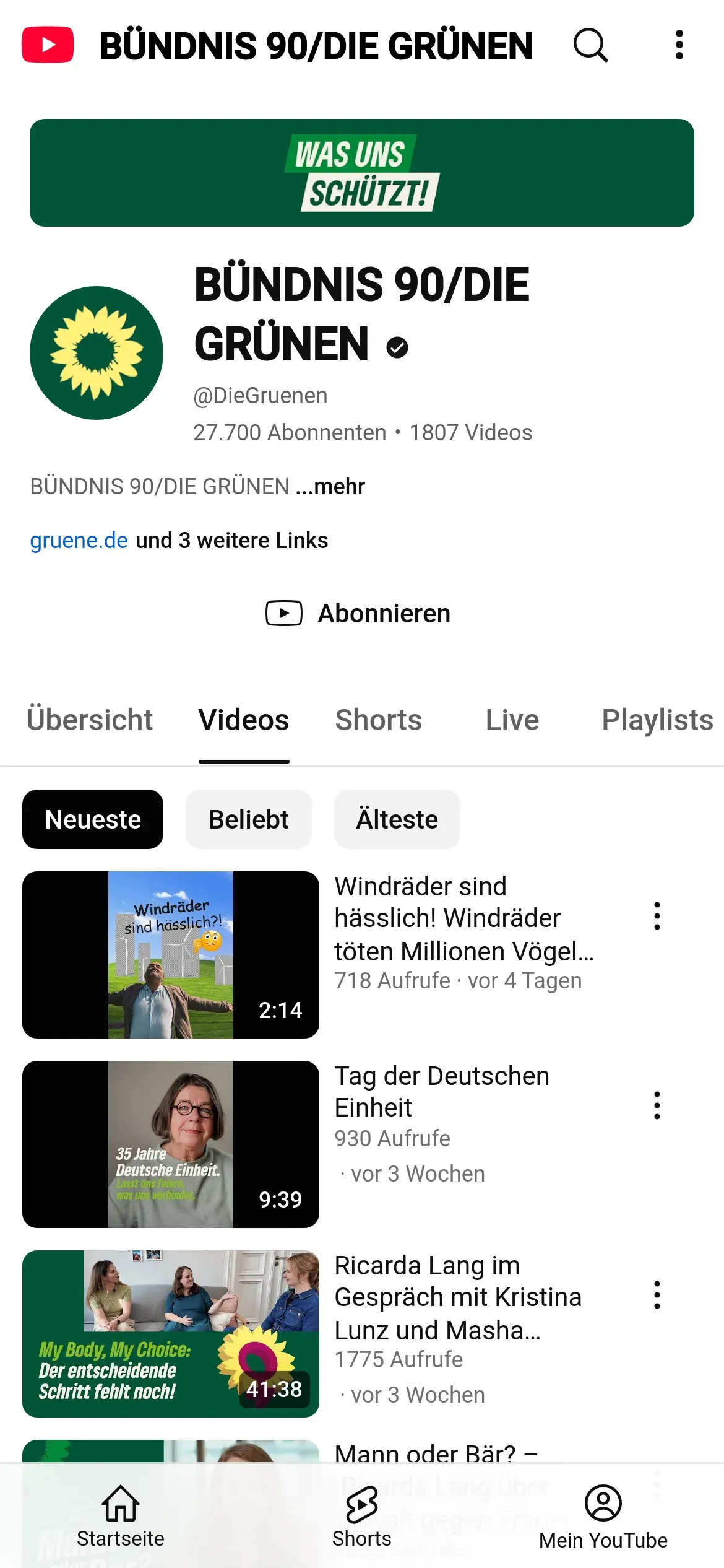 https://m.youtube.com:443/@DieGruenen/videos