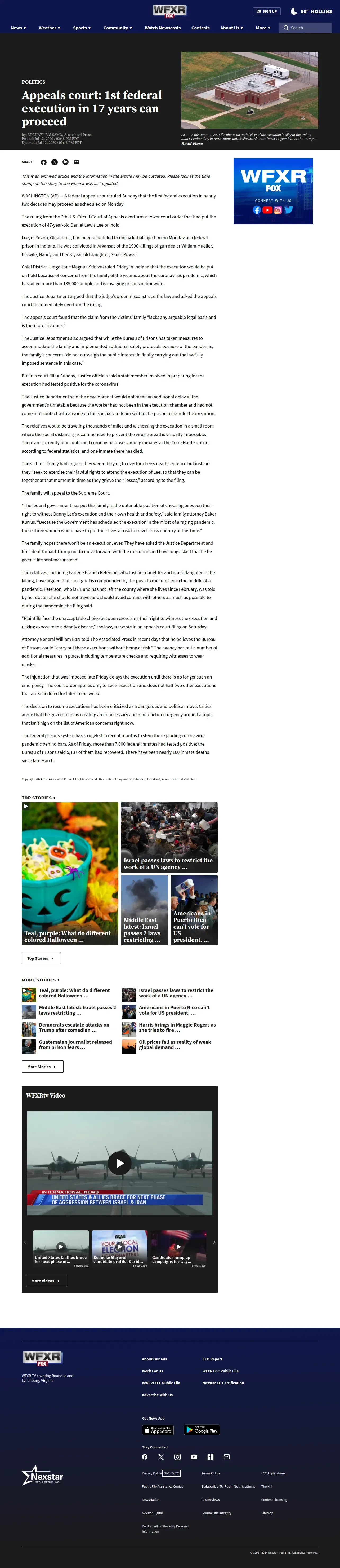 取得元URL: https://www.wfxrtv.com:443/news/politics/worker-aiding-federal-execution-prep-has-positive-virus-test/
