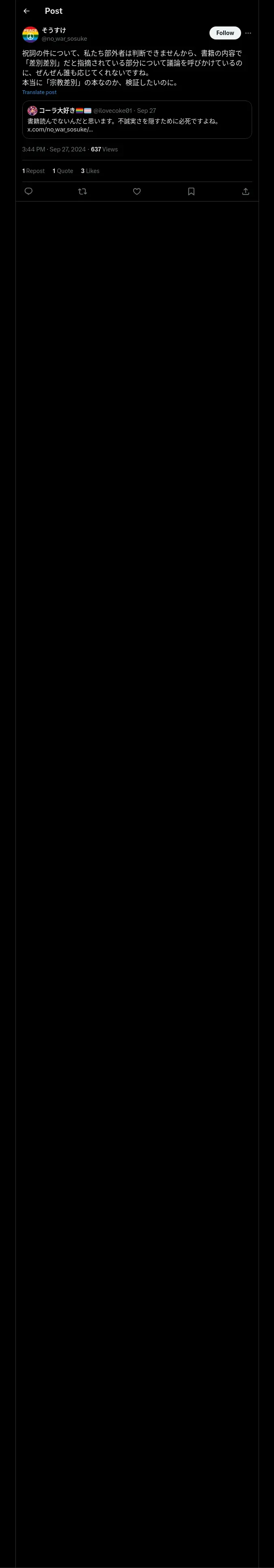 https://x.com:443/no_war_sosuke/status/1839556691140235471?t=plj5dG1OaLf2jT2nNqclwQ&s=19