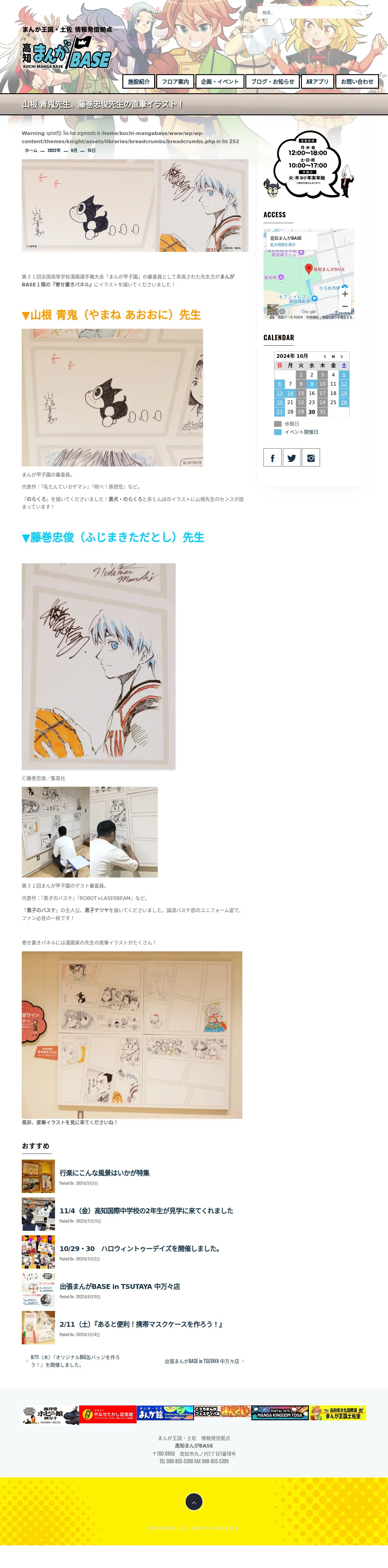 https://kochi-mangabase.jp:443/2022/08/15/%e5%b1%b1%e6%a0%b9-%e9%9d%92%e9%ac%bc%e5%85%88%e7%94%9f%e3%80%81%e8%97%a4%e5%b7%bb%e5%bf%a0%e4%bf%8a%e5%85%88%e7%94%9f%e3%81%ae%e7%9b%b4%e7%ad%86%e3%82%a4%e3%83%a9%e3%82%b9%e3%83%88%ef%bc%81/
