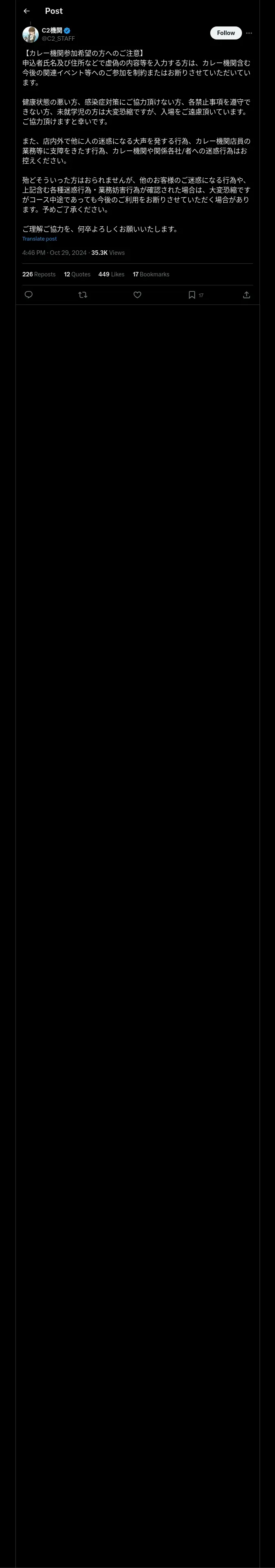 取得元URL: https://x.com:443/C2_STAFF/status/1851168781995033025
