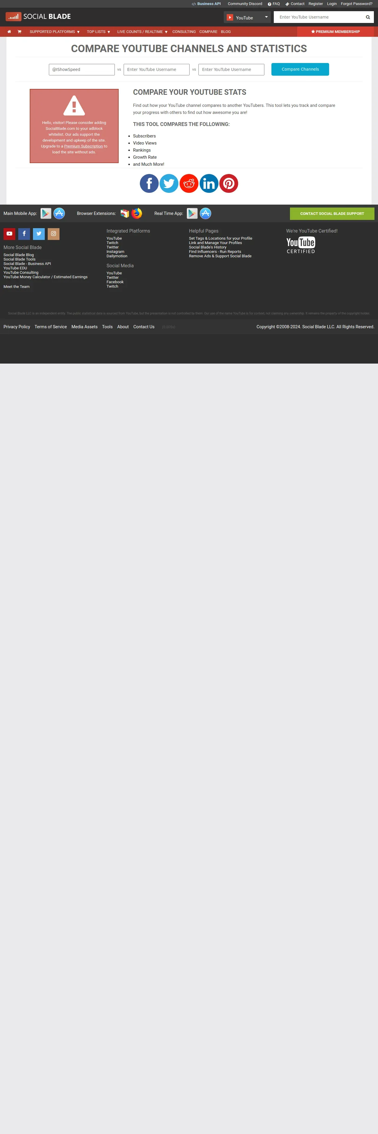 https://socialblade.com:443/youtube/compare/@IShowSpeed/