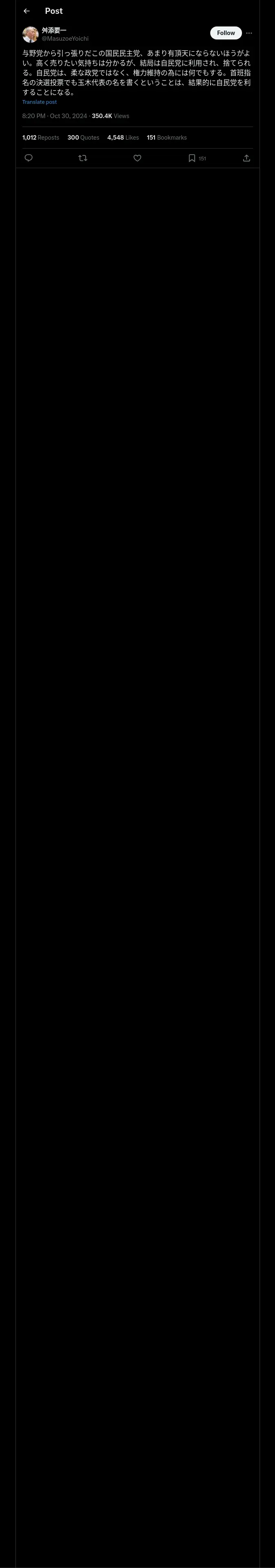 https://x.com:443/MasuzoeYoichi/status/1851584986471952830?ref_src=twsrc%5Egoogle%7Ctwcamp%5Eserp%7Ctwgr%5Etweet