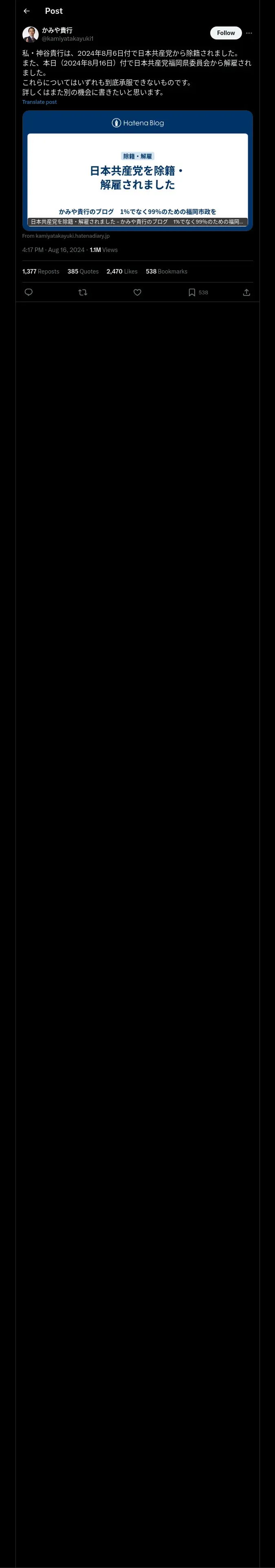https://x.com:443/kamiyatakayuki1/status/1824344745348309345