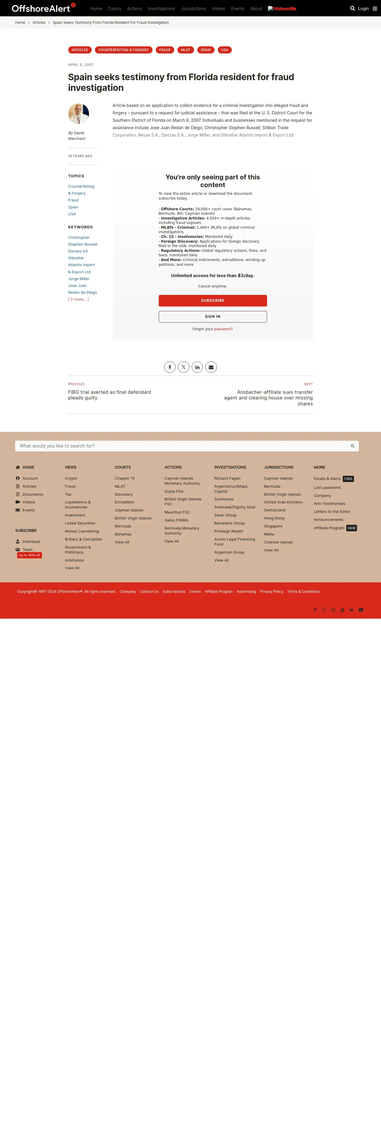 https://www.offshorealert.com:443/spain-seeks-testimony-from-florida-resident-for-fraud-investigation/