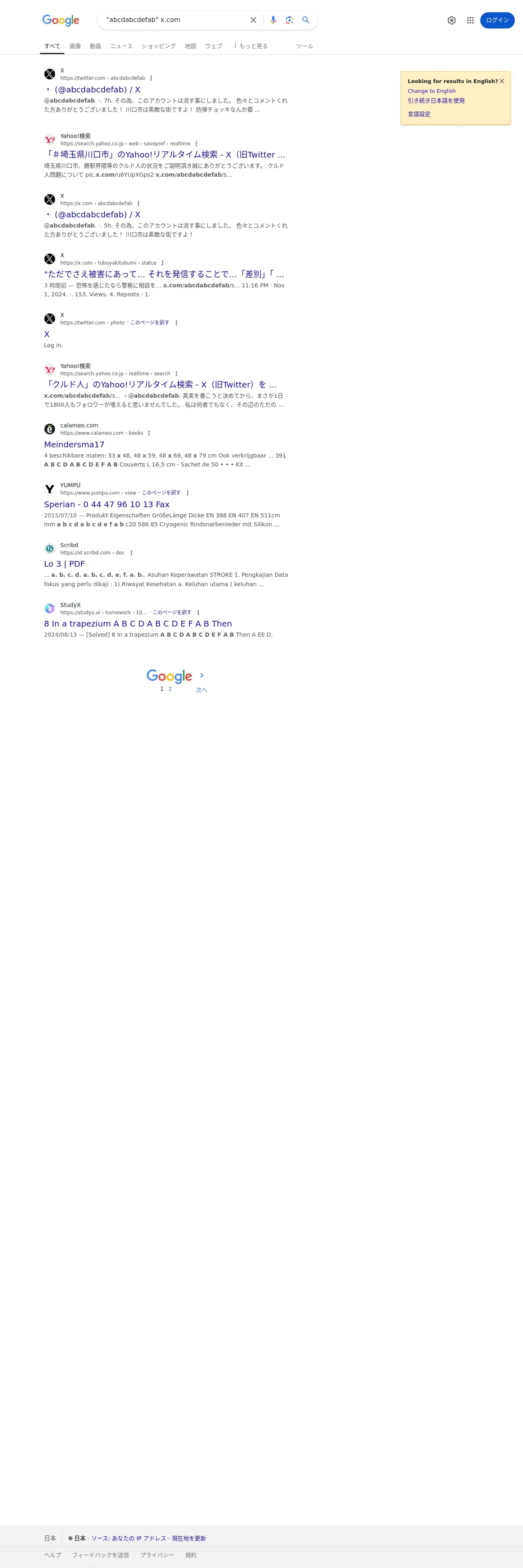 https://www.google.co.jp:443/search?q=%22abcdabcdefab%22+x.com