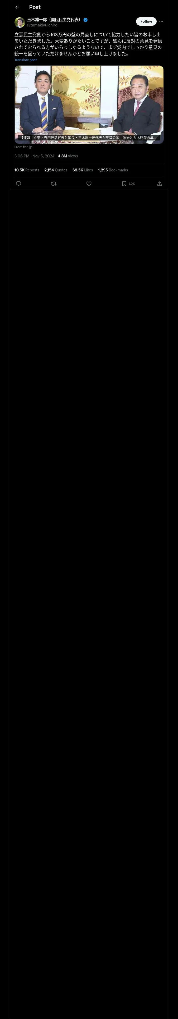 https://x.com:443/tamakiyuichiro/status/1853680360061825357