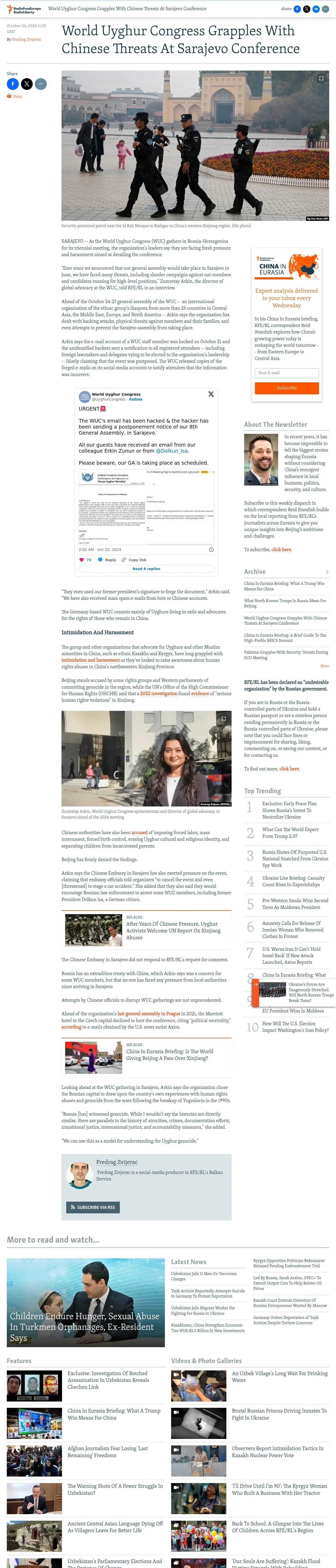 https://www.rferl.org:443/a/wuc-uyghur-congress-harassment-sarajevo-xinjiang-china/33171721.html