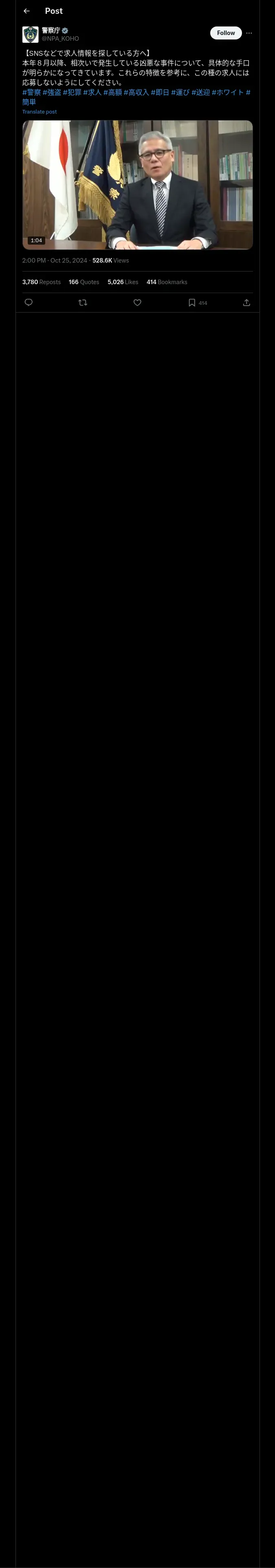 取得元URL: https://x.com:443/NPA_KOHO/status/1849677266252419282