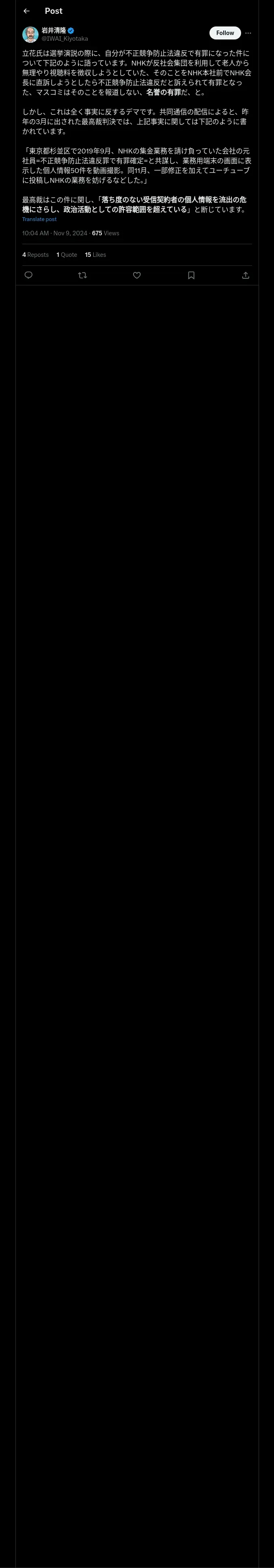 取得元URL: https://x.com:443/IWAI_Kiyotaka/status/1855053834734964850
