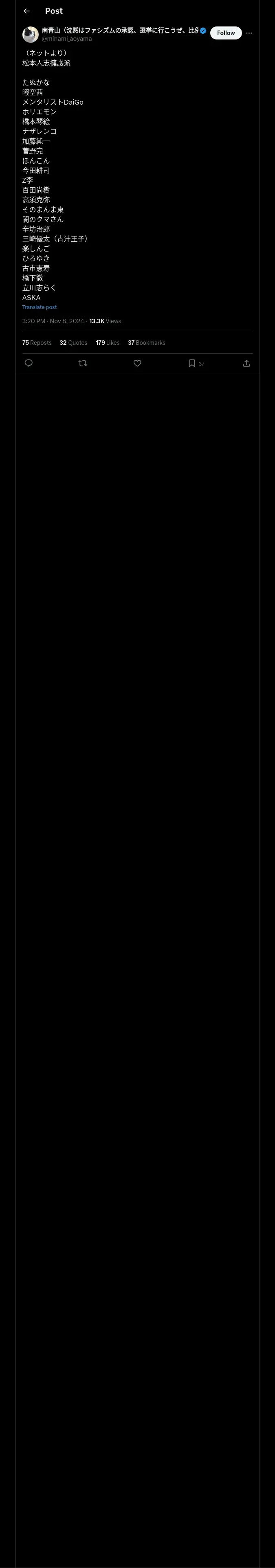 https://x.com:443/minami_aoyama/status/1854770943161237584?t=BsueNioBg9rAMFSzRfGHhQ&s=19