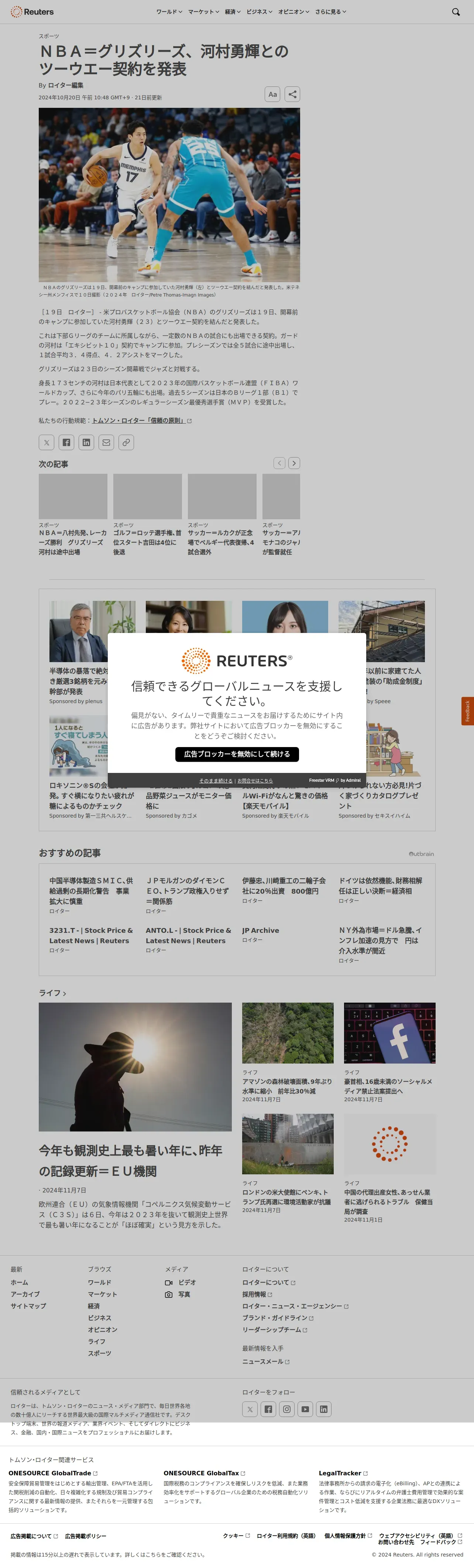 https://jp.reuters.com:443/life/sports/7L4EZBUCTNL5DI5MD44MOE4ZFY-2024-10-20/