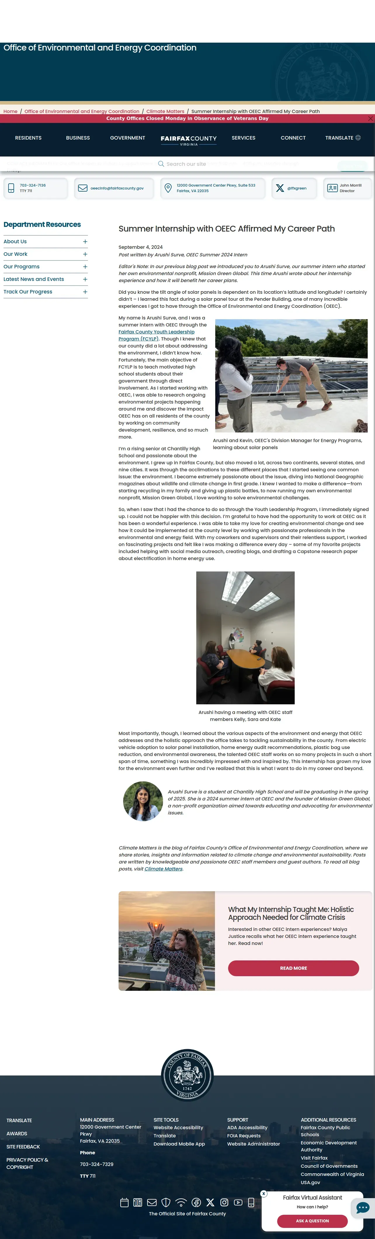 https://www.fairfaxcounty.gov:443/environment-energy-coordination/climate-matters/summer-internship-oeec-affirmed-my-career