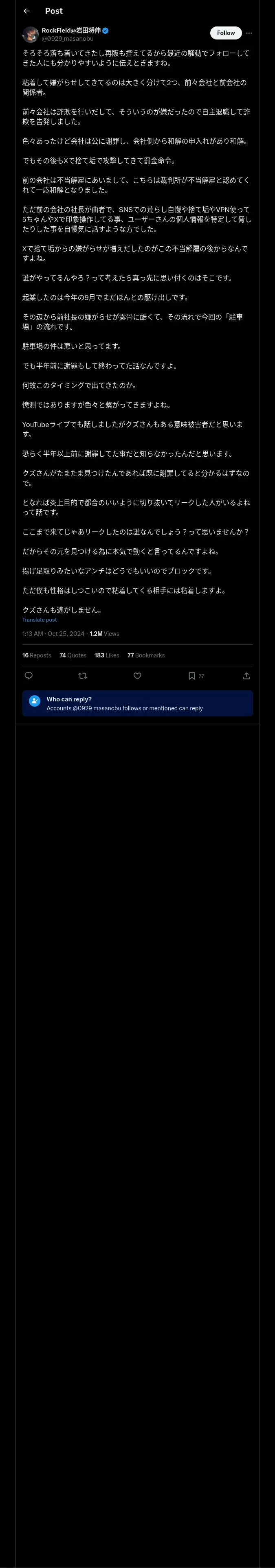 https://x.com:443/0929_masanobu/status/1849484258093744376?t=o2AHqU6EGqGJ9YE8LKaB4A&s=19