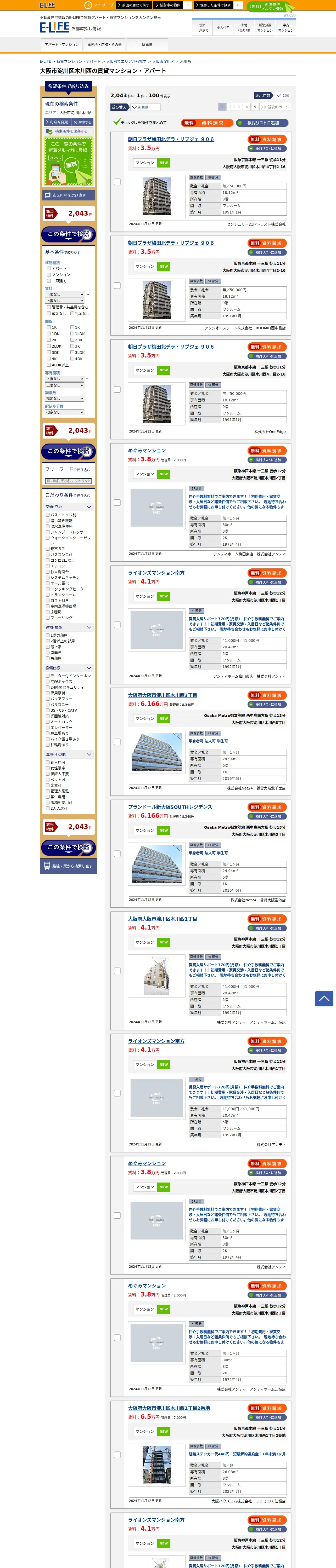 https://www.e-life.jp:443/chintai/apartment/area/osaka/osakashiyodogawaku/5320013/1/