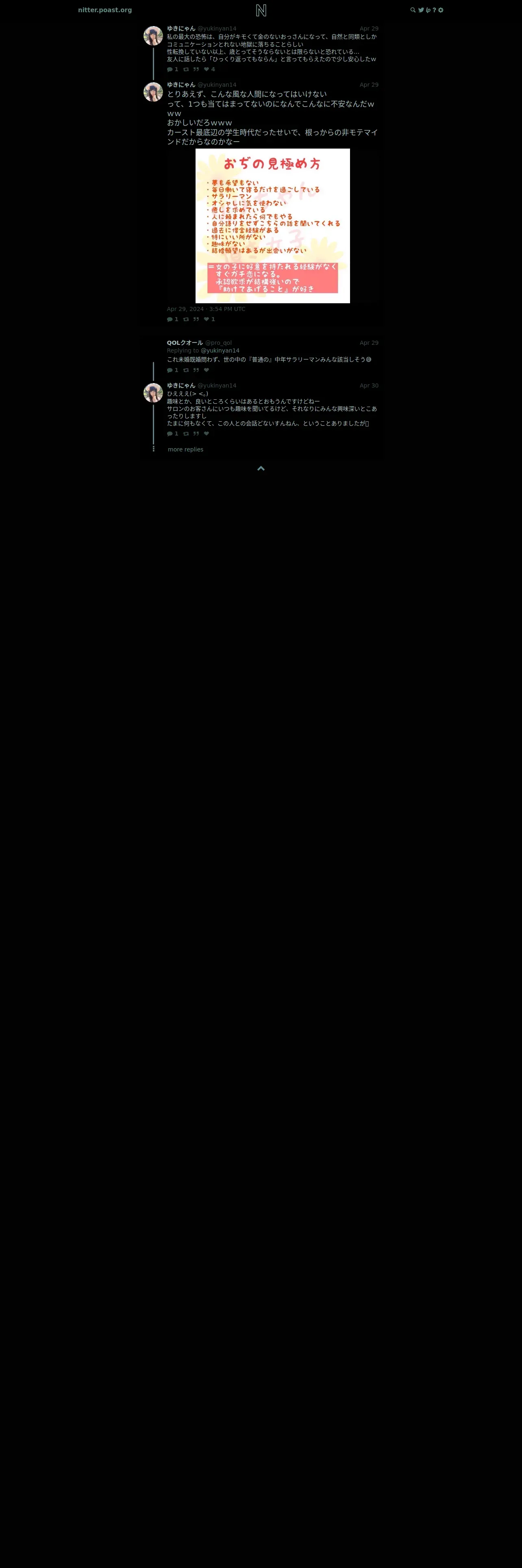 取得元URL: https://nitter.poast.org:443/yukinyan14/status/1784974603716276375