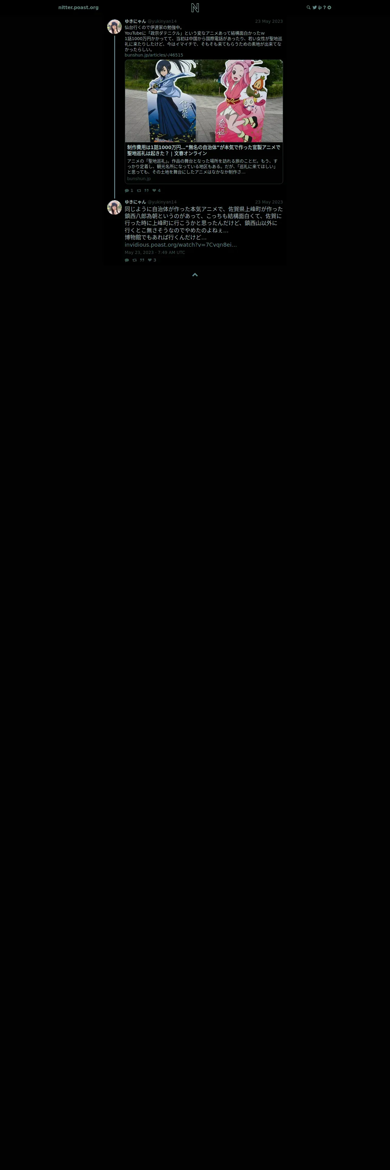 取得元URL: https://nitter.poast.org:443/yukinyan14/status/1660915909098360832