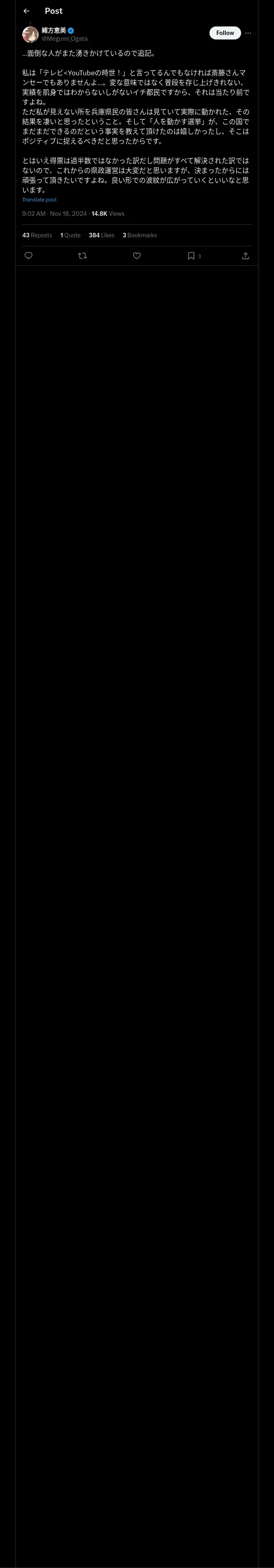 https://x.com:443/Megumi_Ogata/status/1858299824380248542