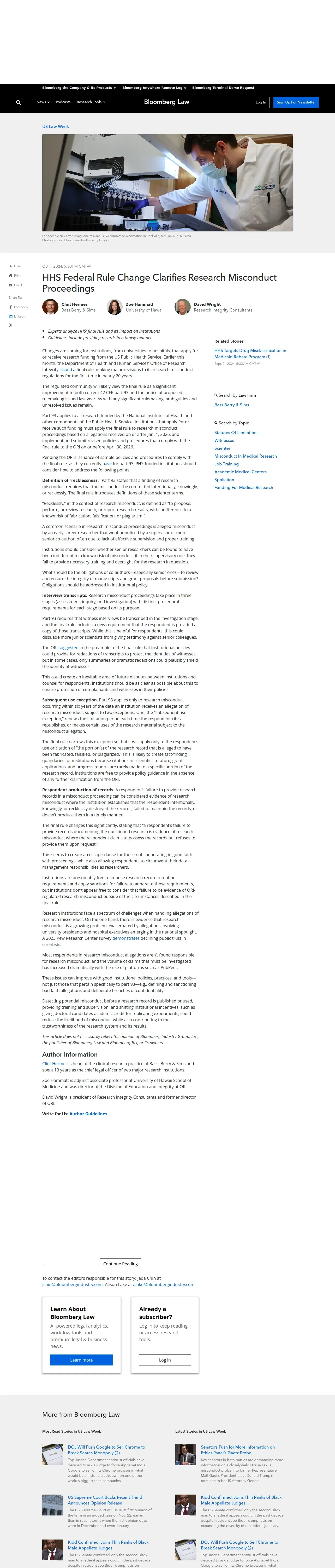 https://news.bloomberglaw.com:443/us-law-week/hhs-federal-rule-change-clarifies-research-misconduct-proceedings