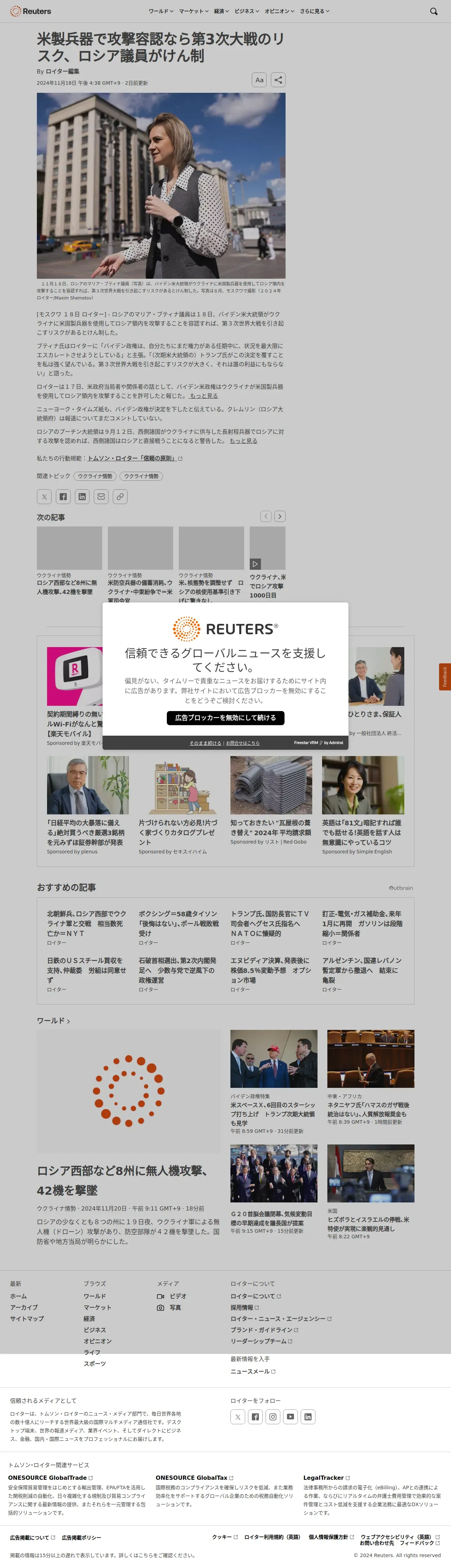 https://jp.reuters.com:443/world/ukraine/366B7YEN7VPNRJPFHWS2HCSIII-2024-11-18/