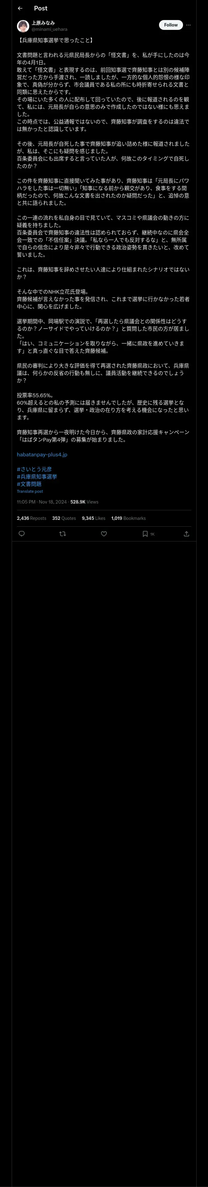 取得元URL: https://x.com:443/minami_uehara/status/1858511797885743587