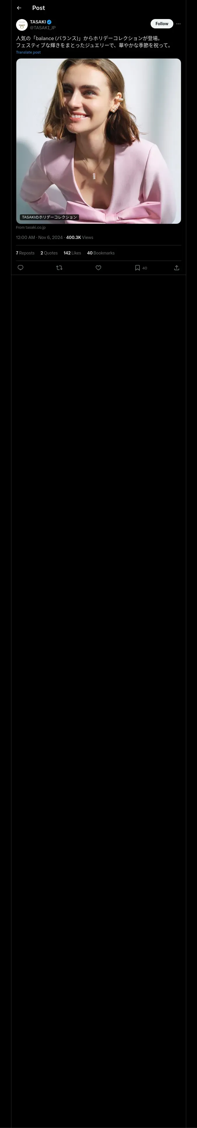取得元URL: https://x.com:443/TASAKI_JP/status/1853814542079586707