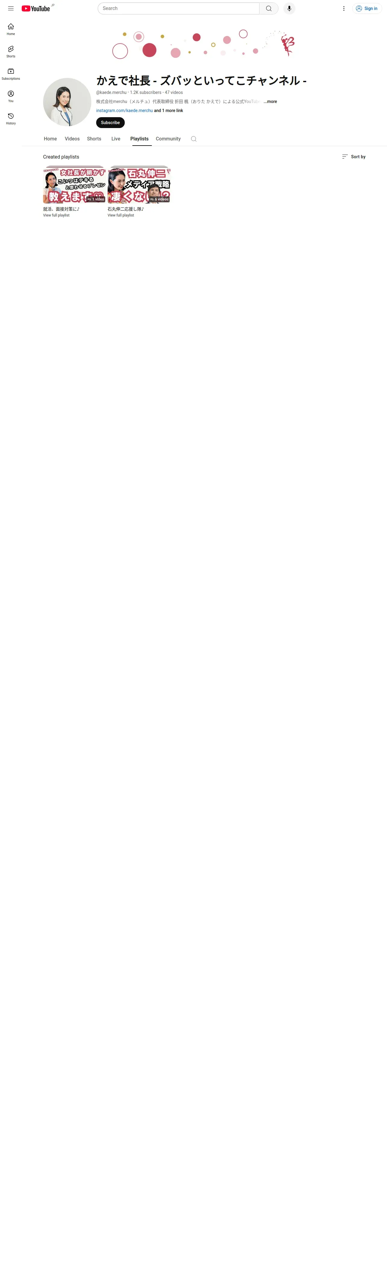 取得元URL: https://www.youtube.com:443/@kaede.merchu/playlists