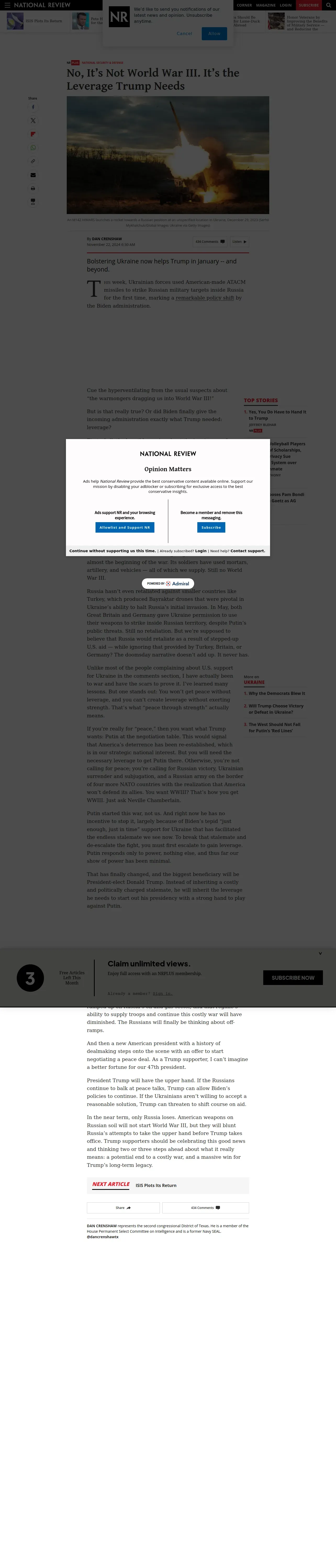 https://www.nationalreview.com:443/2024/11/no-its-not-world-war-iii-its-the-leverage-trump-needs/