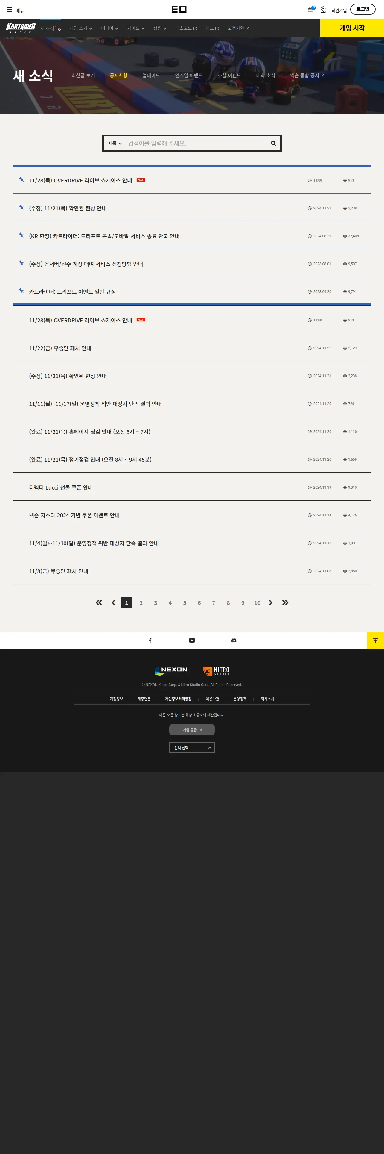 https://kartdrift.nexon.com:443/kartdrift/ko/news/announcement/list