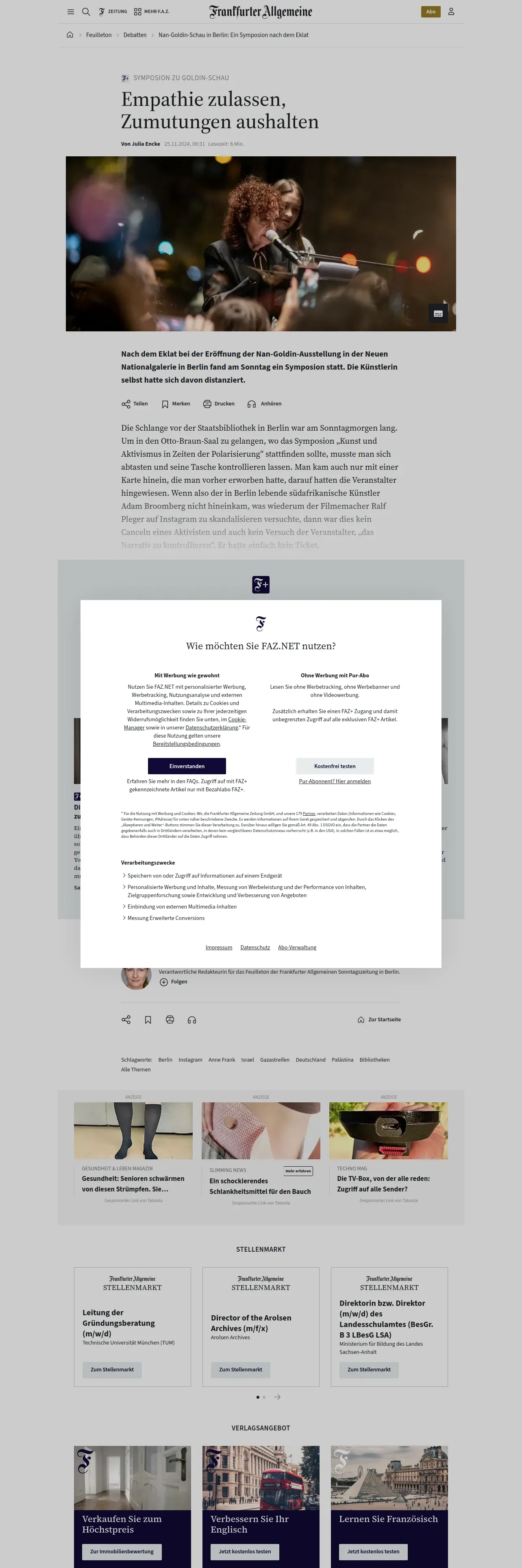 https://www.faz.net:443/aktuell/feuilleton/debatten/nan-goldin-schau-in-berlin-ein-symposion-nach-dem-eklat-110132464.html?fbclid=IwZXh0bgNhZW0CMTEAAR0zsAVMTs2xhU4Md3C3UN0SpOdYAjmQqXuga17Ras4IfoAdRYgKl52iB_I_aem_xoQ2Mhiw-YaZr3pR9MwZsQ