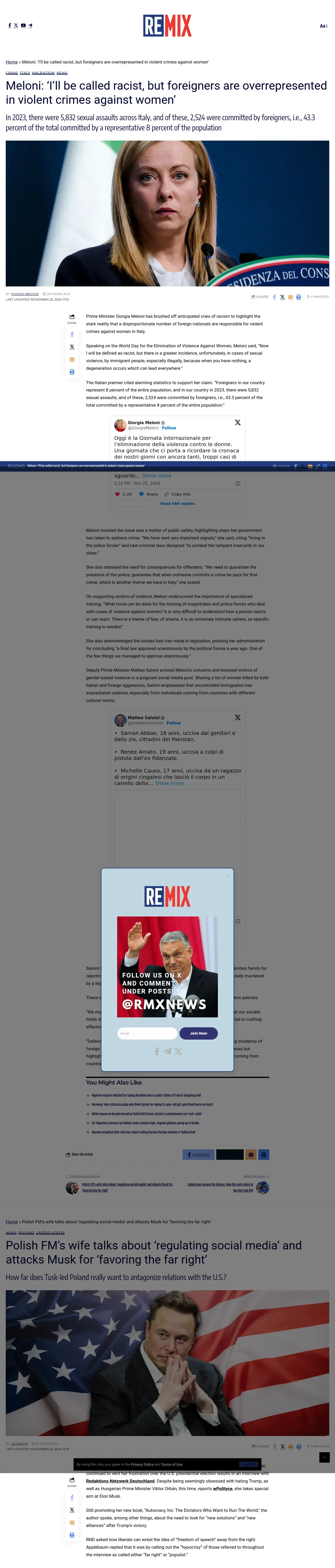 https://rmx.news:443/article/meloni-ill-be-called-racist-but-foreigners-are-overrepresented-in-violent-crimes-against-women/