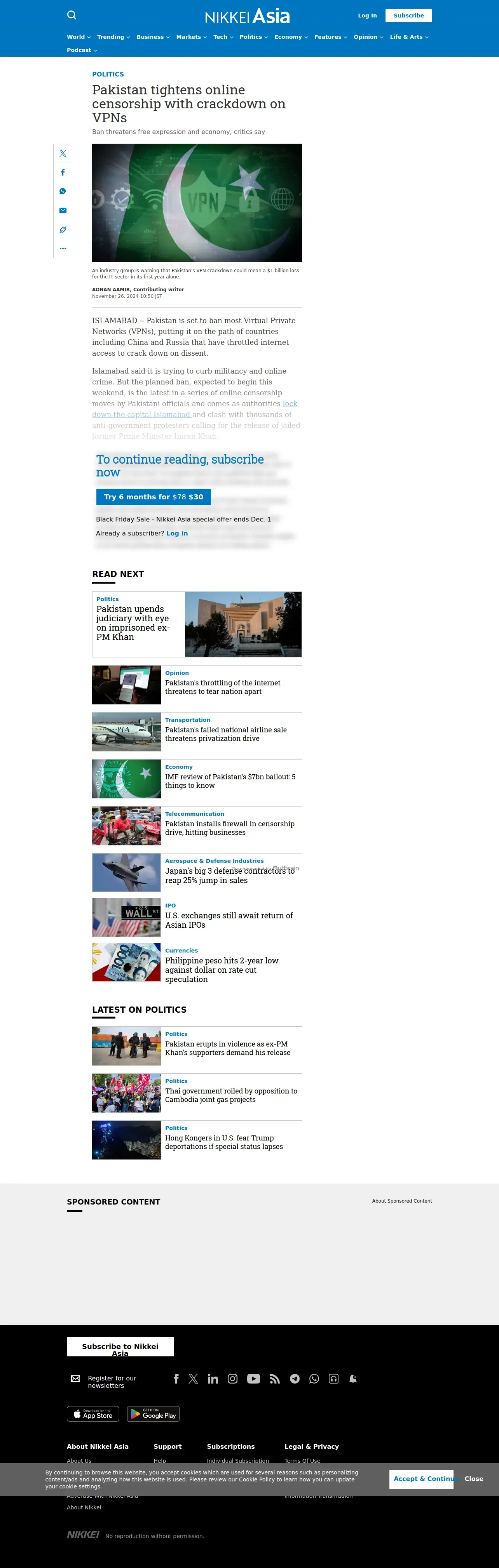https://asia.nikkei.com:443/Politics/Pakistan-tightens-online-censorship-with-crackdown-on-VPNs