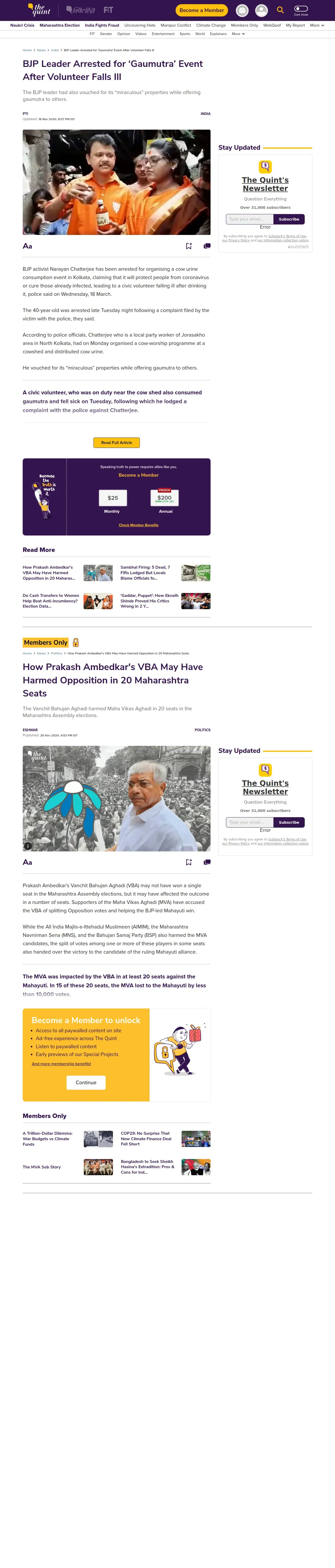 https://www.thequint.com:443/news/india/bjp-leader-narayan-chatterjee-held-for-hosting-gaumutra-drinking-event-for-covid-19-coronavirus