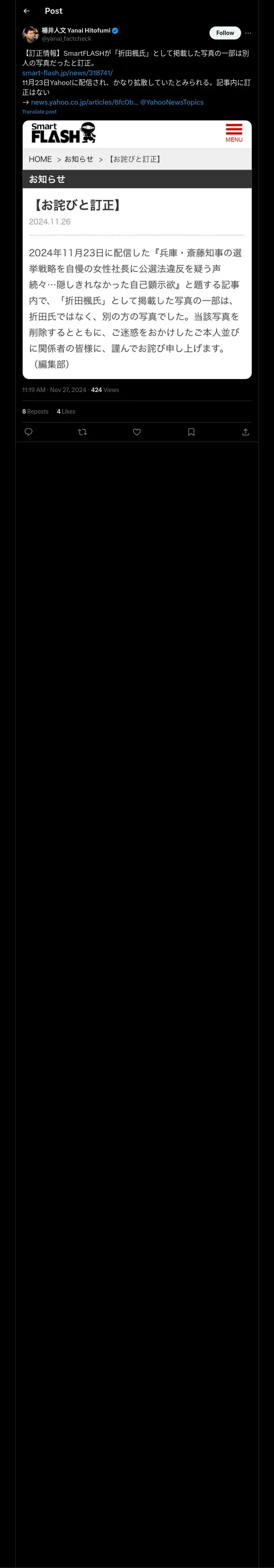 取得元URL: https://x.com:443/yanai_factcheck/status/1861595783197491705