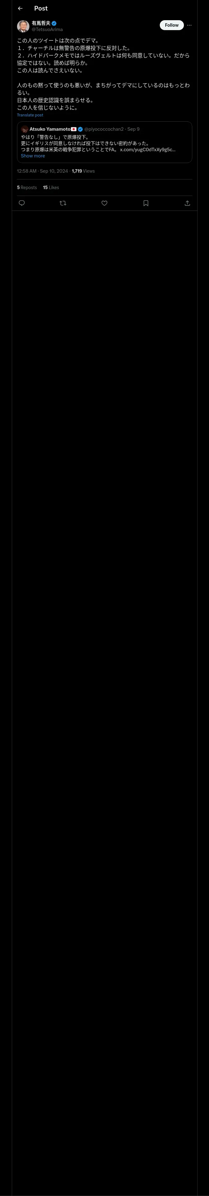 取得元URL: https://x.com:443/TetsuoArima/status/1833173177859821940