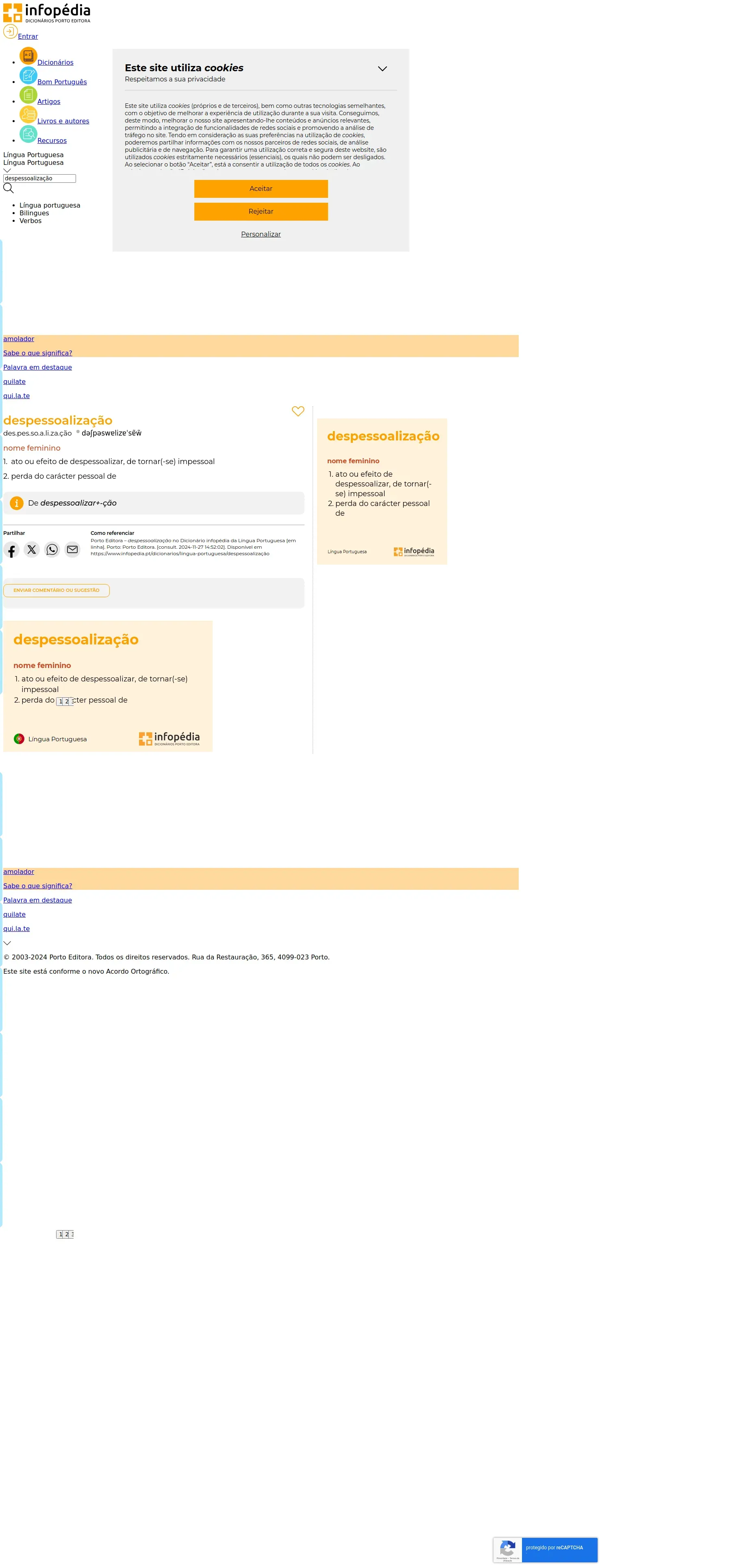 https://www.infopedia.pt:443/dicionarios/lingua-portuguesa/despessoaliza%C3%A7%C3%A3o