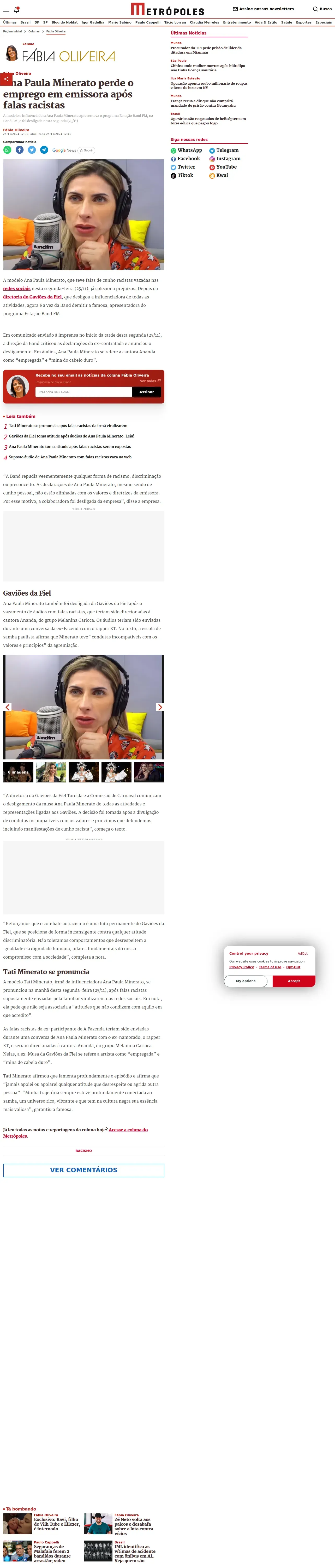 https://www.metropoles.com:443/colunas/fabia-oliveira/ana-paula-minerato-perde-o-emprego-em-emissora-apos-falas-racistas