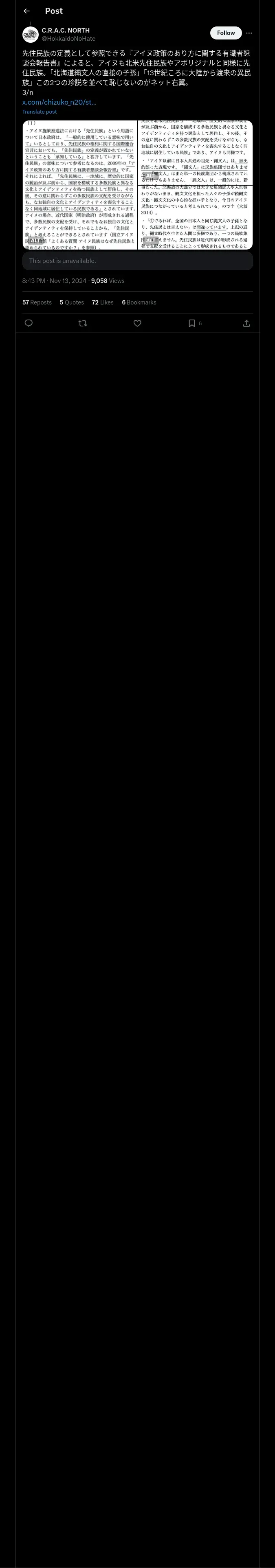 https://x.com:443/HokkaidoNoHate/status/1856664290922742219