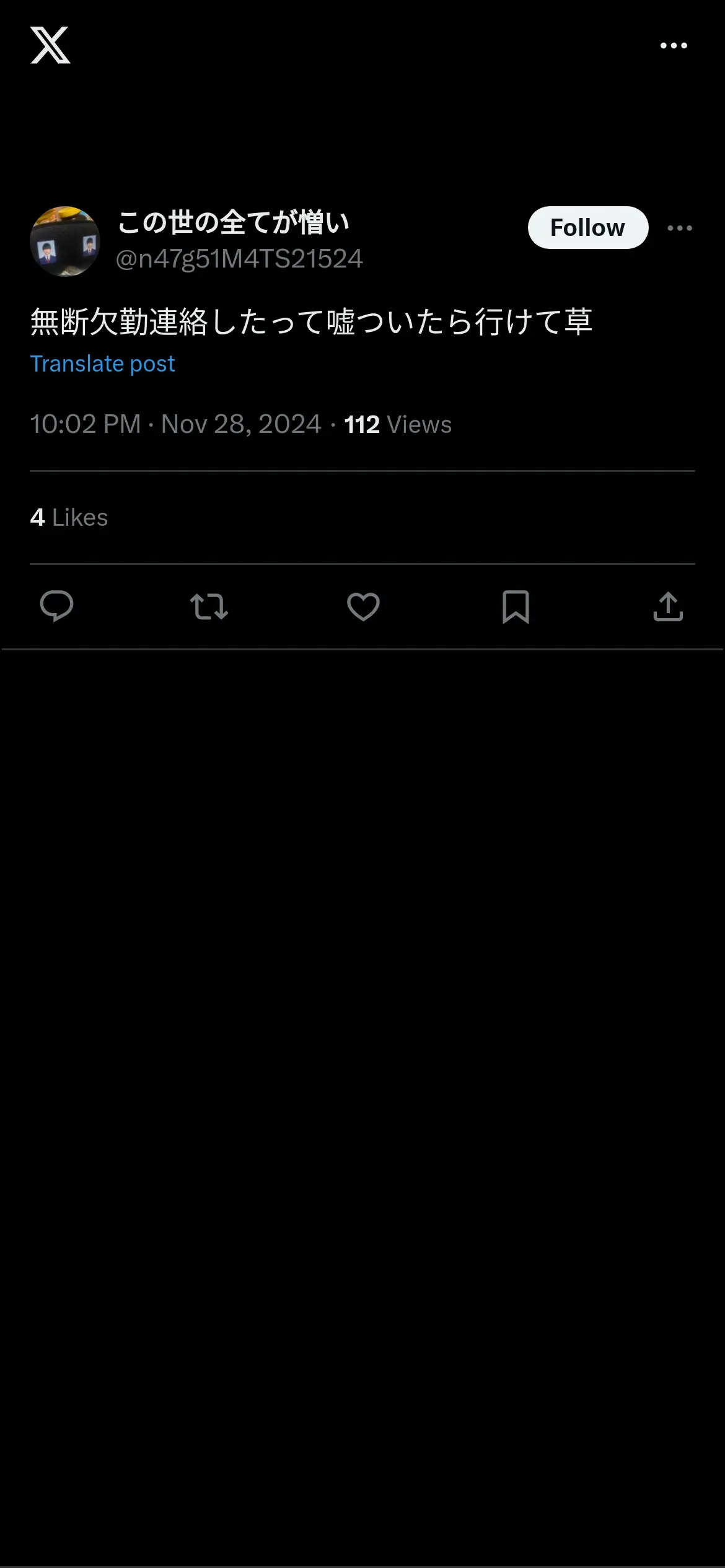 https://x.com:443/n47g51M4TS21524/status/1862119787696152725?t=eozqD8EzQGMBajck4-fDRQ&s=19