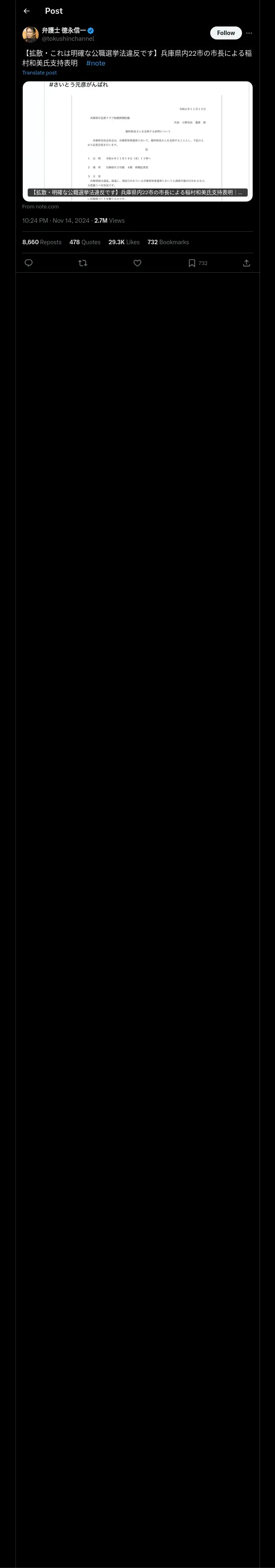 https://x.com:443/tokushinchannel/status/1857052086069784597
