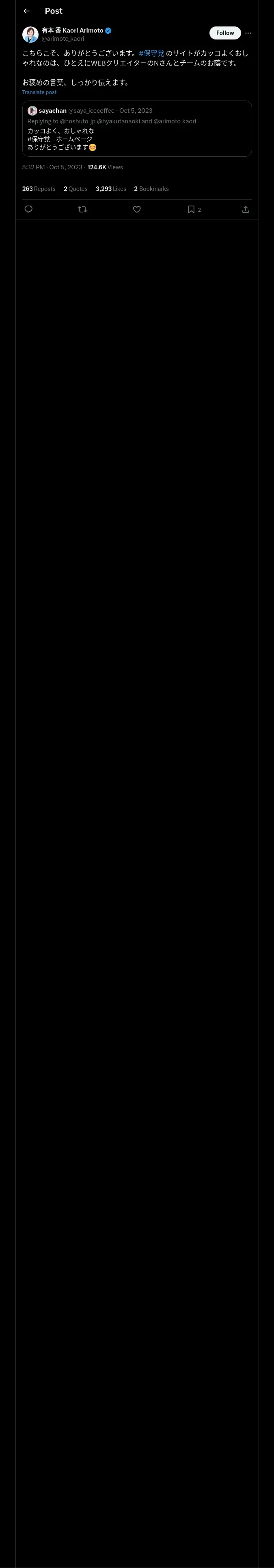取得元URL: https://x.com:443/arimoto_kaori/status/1709894404365037744