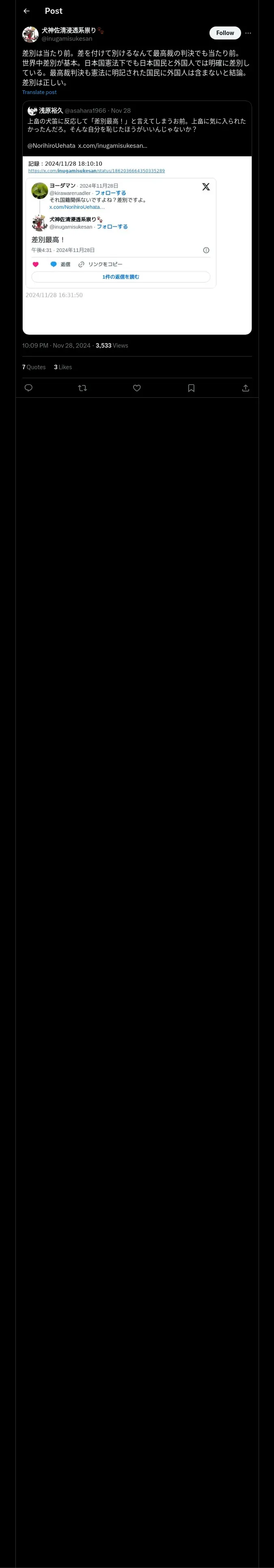 取得元URL: https://x.com:443/inugamisukesan/status/1862121738592719257
