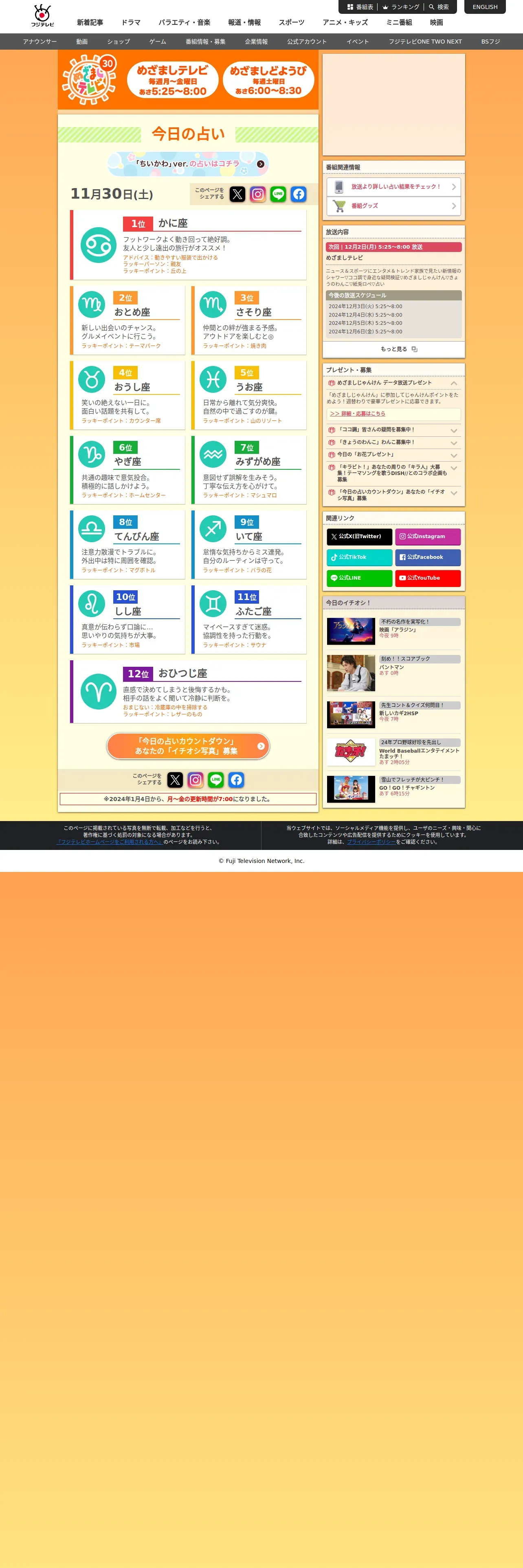 https://www.fujitv.co.jp:443/meza/uranai/index.html