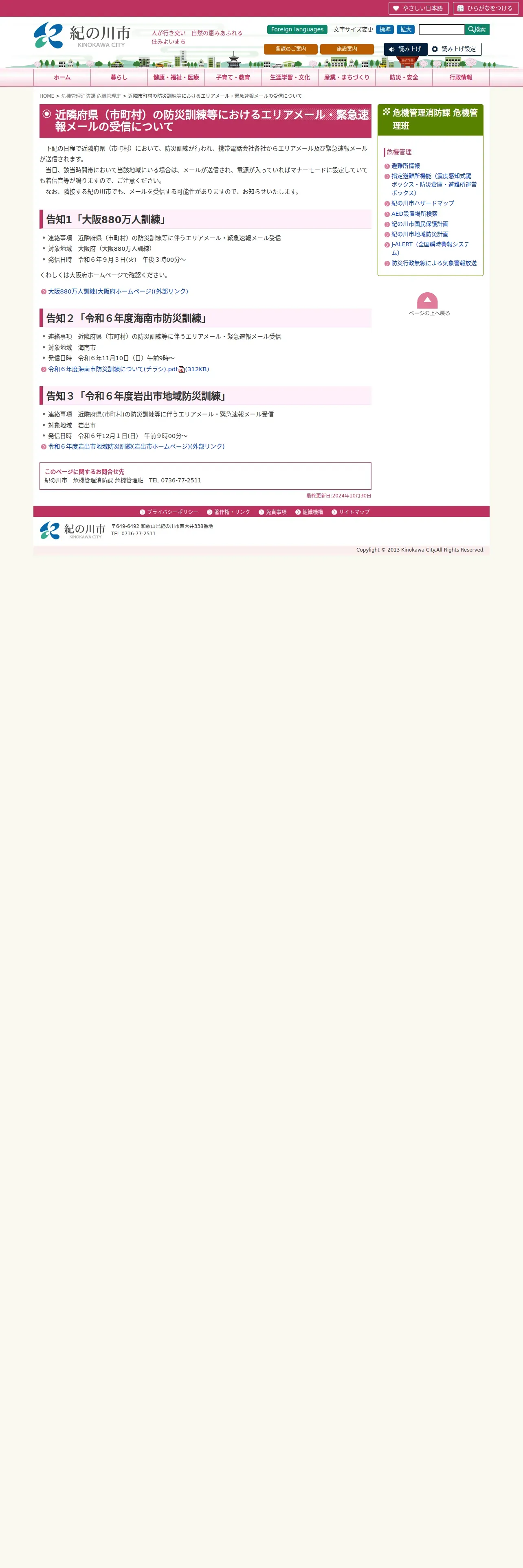 https://www.city.kinokawa.lg.jp:443/kikikanri/eriamail-kunnren.html