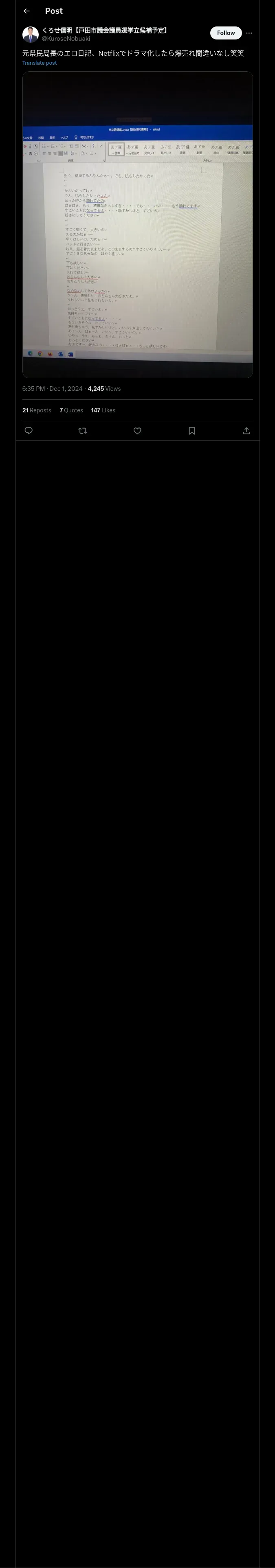 https://x.com:443/KuroseNobuaki/status/1863154822259822685