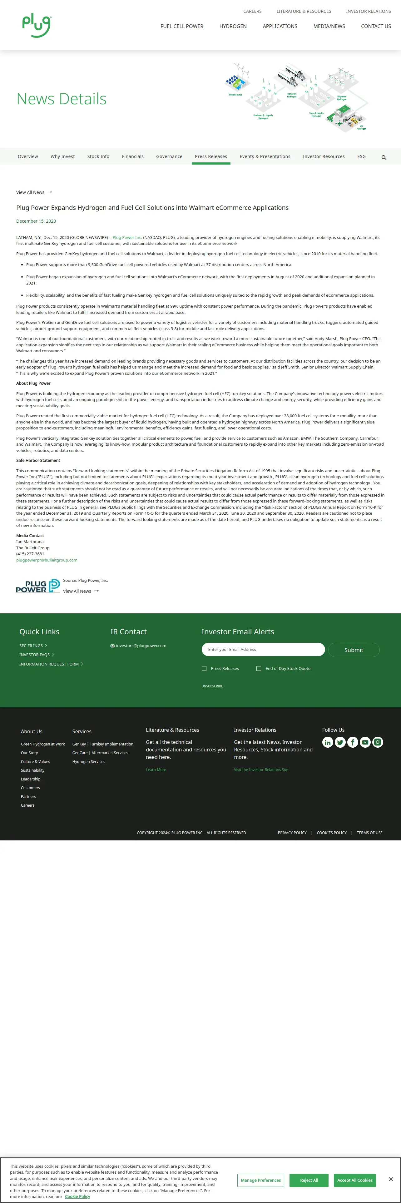 取得元URL: https://www.ir.plugpower.com:443/press-releases/news-details/2020/Plug-Power-Expands-Hydrogen-and-Fuel-Cell-Solutions-into-Walmart-eCommerce-Applications-2020-12-15/default.aspx